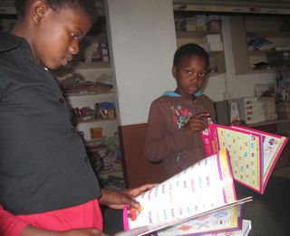 New friend, Godfred. His reading level wasn't as high as his friends so he chose younger books. I was so thrilled that we had a variety of books for them to pick from.